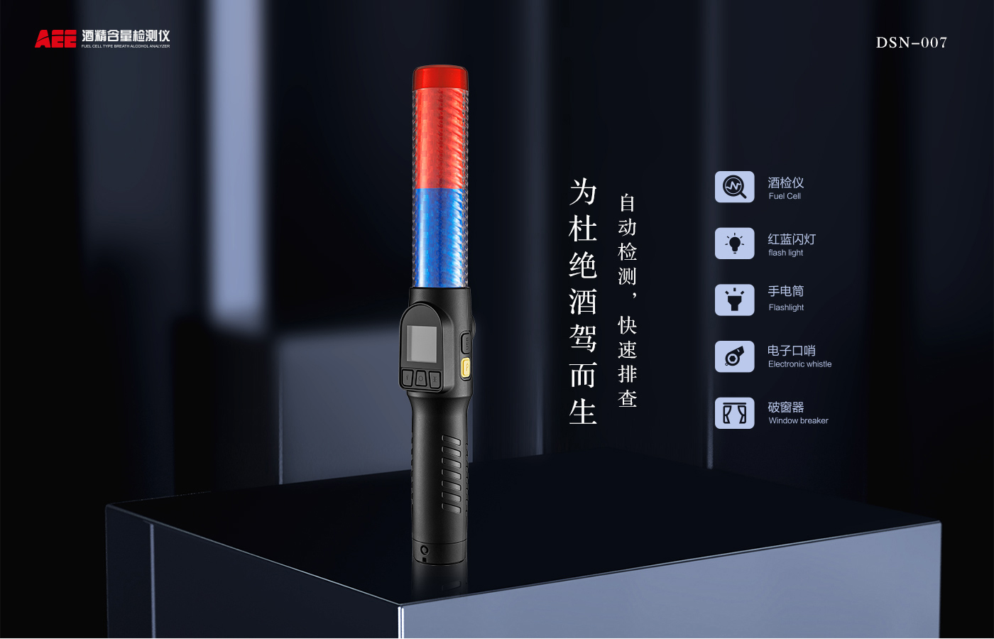 AEE DSN-007酒精測試儀,是科視達專爲道外門(dào)路交通執法研發(fā)的警用裝備,集酒精測試、些錯交通指揮、照明、聲光報警、電子口哨等如土多功能(néng)爲一體,具備檢測迅速、精準,操作簡單及輕巧便攜等特點。懂醫