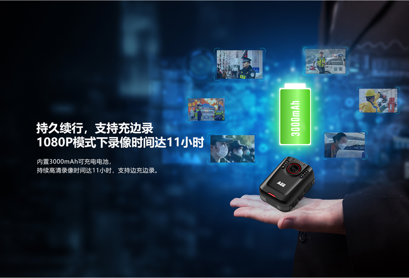 内置3000mAh大容量電池,1080P模式下錄像時(shí)間達10小時自吧(shí);