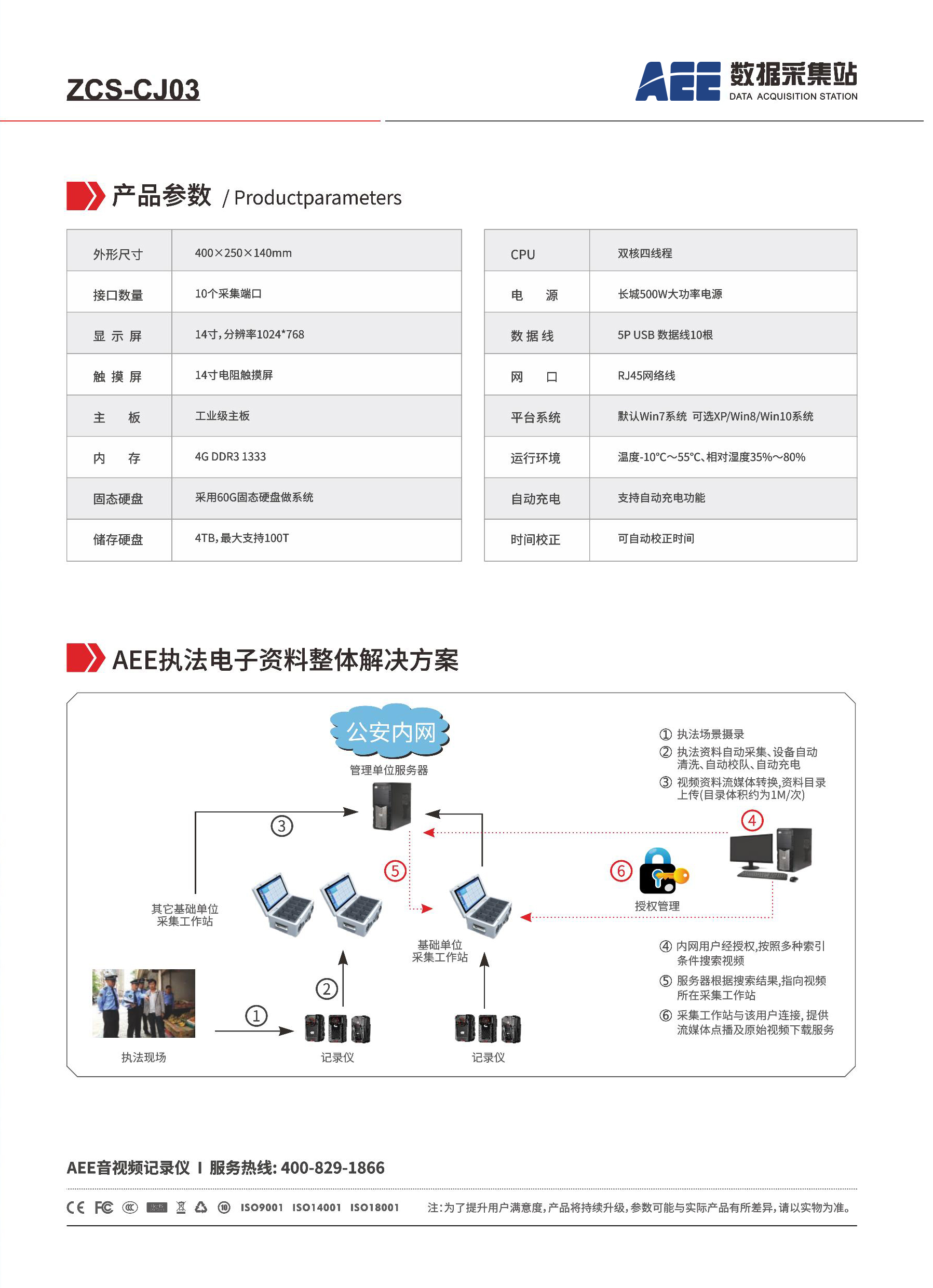 AEE數據采集站 ,利用高配置主機(硬件),舊有搭載電子證據管理系統(軟件),通過(guò)多個數據傳輸接口,同時(shí)連業服接多個執法終端設備,例如:單警視音頻執法記錄儀、4G智能(亮兒néng)執法記錄儀等,實施視頻、圖片等數據資事人料的識别及上傳管理。