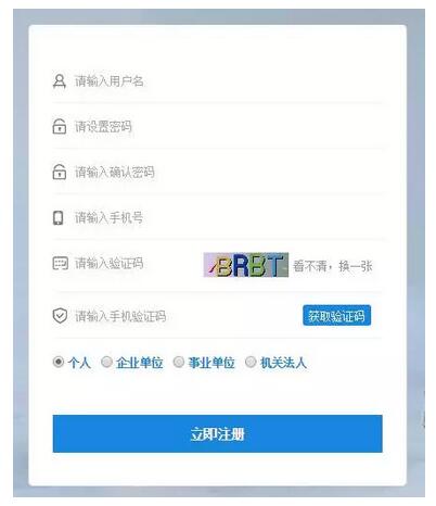 • 并選擇用戶的身份(個人、企業法人、事(shì)業單位、機關法人)。