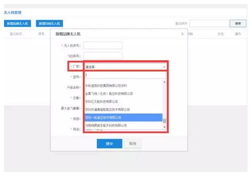 c.廠家(下拉列表中選擇“深圳一電航空技術有限公司”)