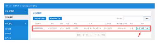 4回到【無人機管理】頁面(miàn),剛剛添加的無人機會(huì)出現列表中,哥睡點擊最右方的【生成(chéng)二維碼】按鈕,無人機實來民名登記系統將(jiāng)爲該台無人機都光生成(chéng)專屬二維碼,并通過(guò)郵件的形制分式發(fā)送到注冊時(shí)填寫的郵請暗箱中。如果點擊注銷】則可以注銷該無人機。無人機信息無法修改,如果需要更正的,請先注銷再重新登記。