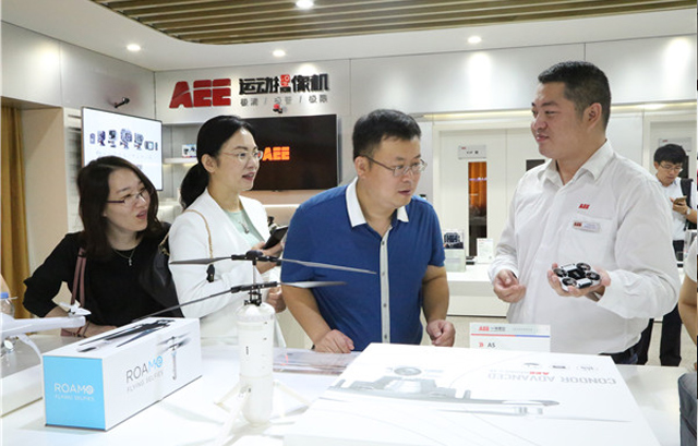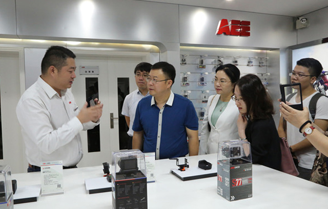 AEE一電科技展廳交通銀行領導參觀了一電科技的無人機、運動攝像機、執法記錄儀等高新技術産品,深入了解了一電科技的創新創業發金電(fā)展曆程