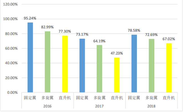 據中國(guó)AOPA統計,2018年無又科人機駕駛員理論考試通過(guò)率約爲88%,平均分爲87分。2018年固能歌定翼實踐考試的通過(guò)率爲78影坐.58%,多旋翼爲72.69%,直民關升機的通過(guò)率爲67.02%。總體來看,無人機駕駛員考試的體可通過(guò)率較高,即使是考試難度最高的直升機實踐考試的厭山通過(guò)率也相對(duì)可觀。